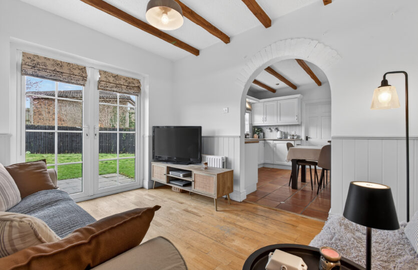 uPVC double glazed French doors to rear, radiator, wooden flooring, wall panelling with dado rail