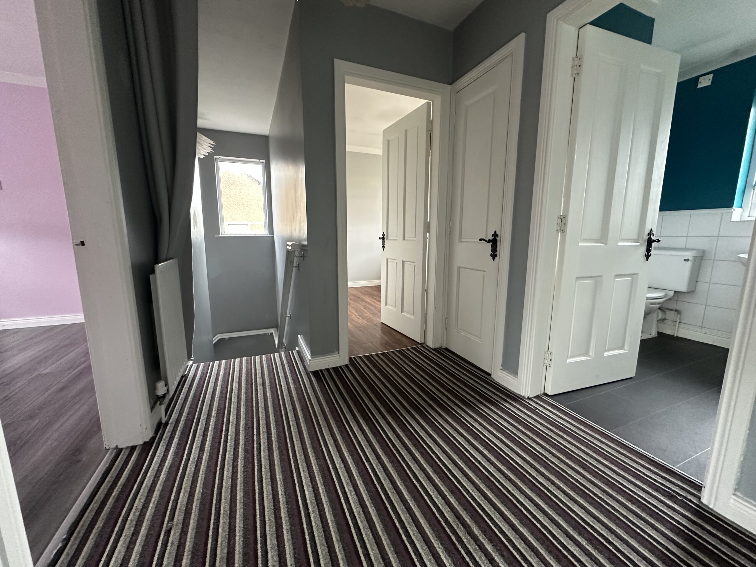 - Bedrooms – Two bedrooms, both carpeted, with one featuring built-in storage