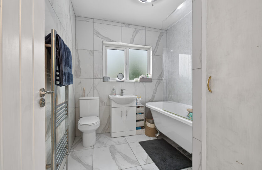 8’4 x 7’1 (2.536m x 2.147m into bath recess and including hotpress)