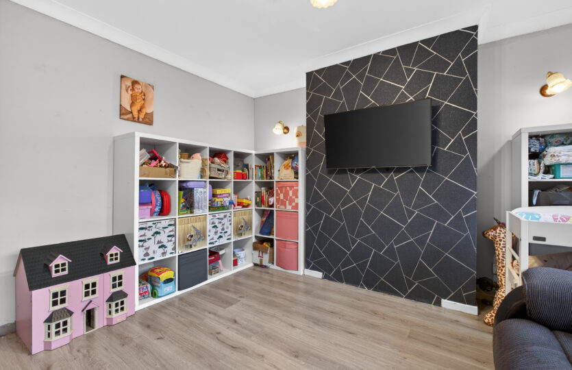 12’3 x 11’2 (3.734m x 3.407m currently as a playroom)