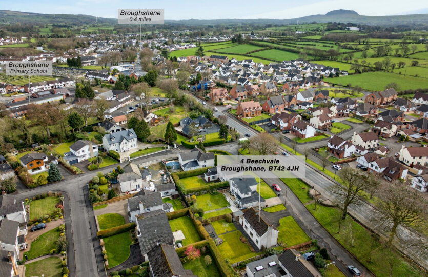 This property offers an enviable location, within walking distance of the village main street and enroute to the glens of Antrim and stunning coastline yet just a few minutes’ drive to the neighbouring town of Ballymena and the A26/M2 link for the commuter with Belfast to the south and the North coast just over 30 miles each way.