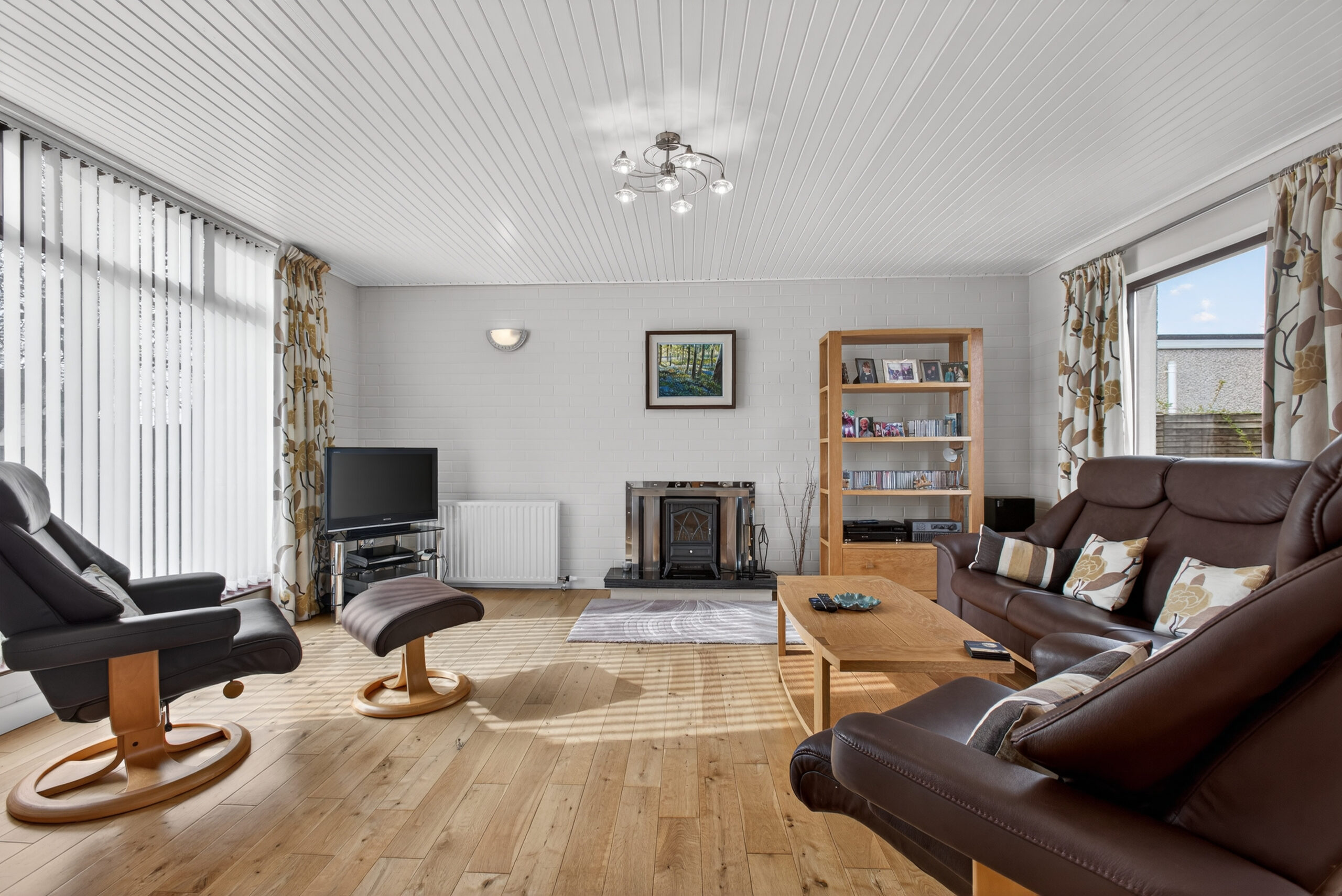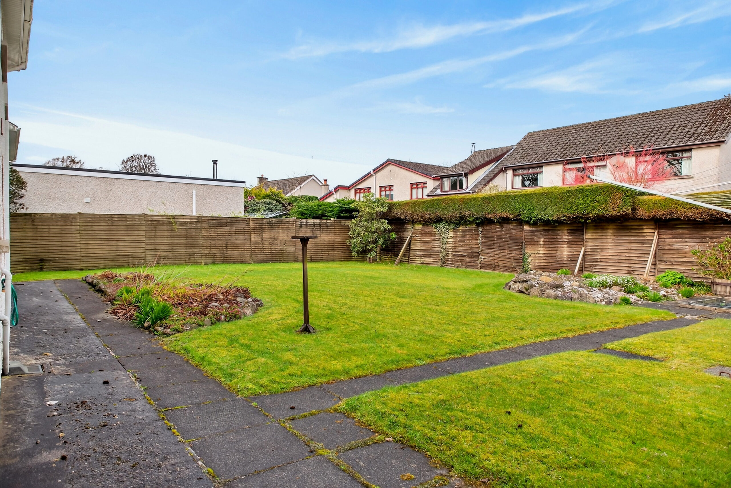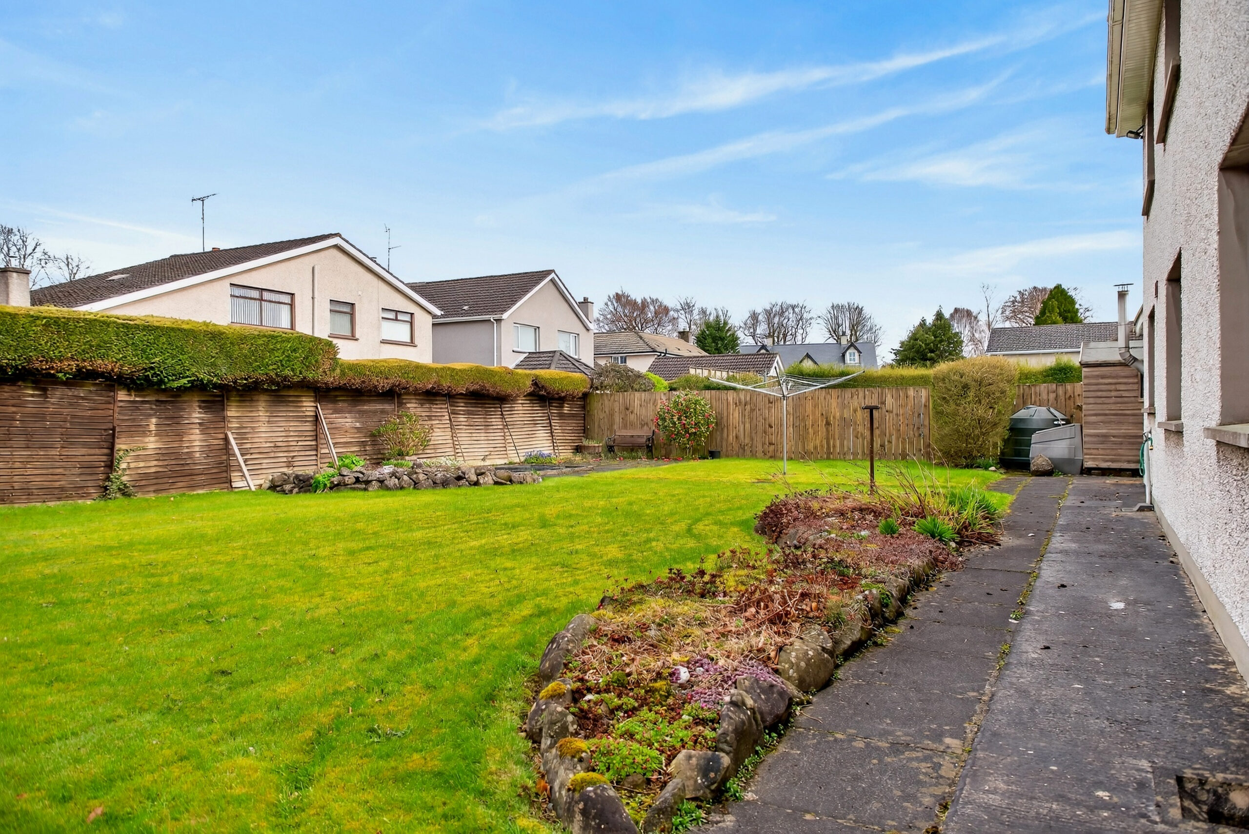 Externally, a driveway to the front with lawned areas to either side, provides a good level of parking while there is a generous enclosed rear garden with further lawned area and patio.