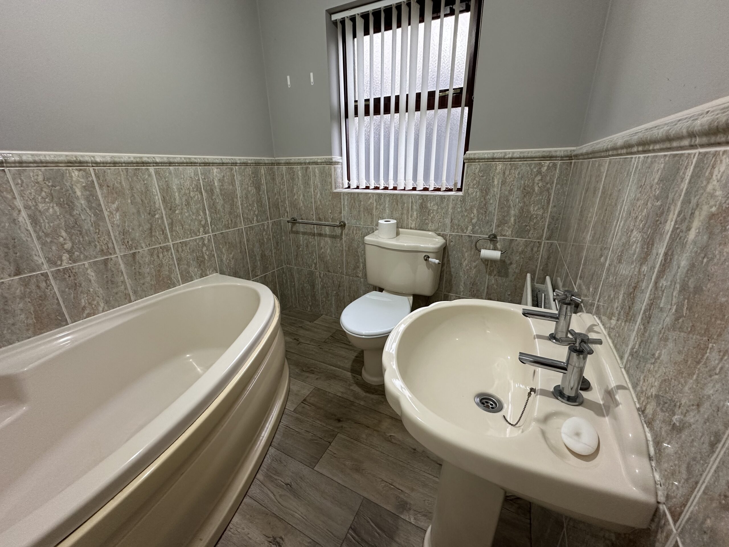 There are three well-proportioned bedrooms. Externally, the property boasts a large rear garden, detached garage, and a tarmac driveway providing ample off-street parking.