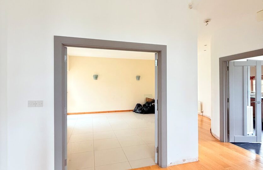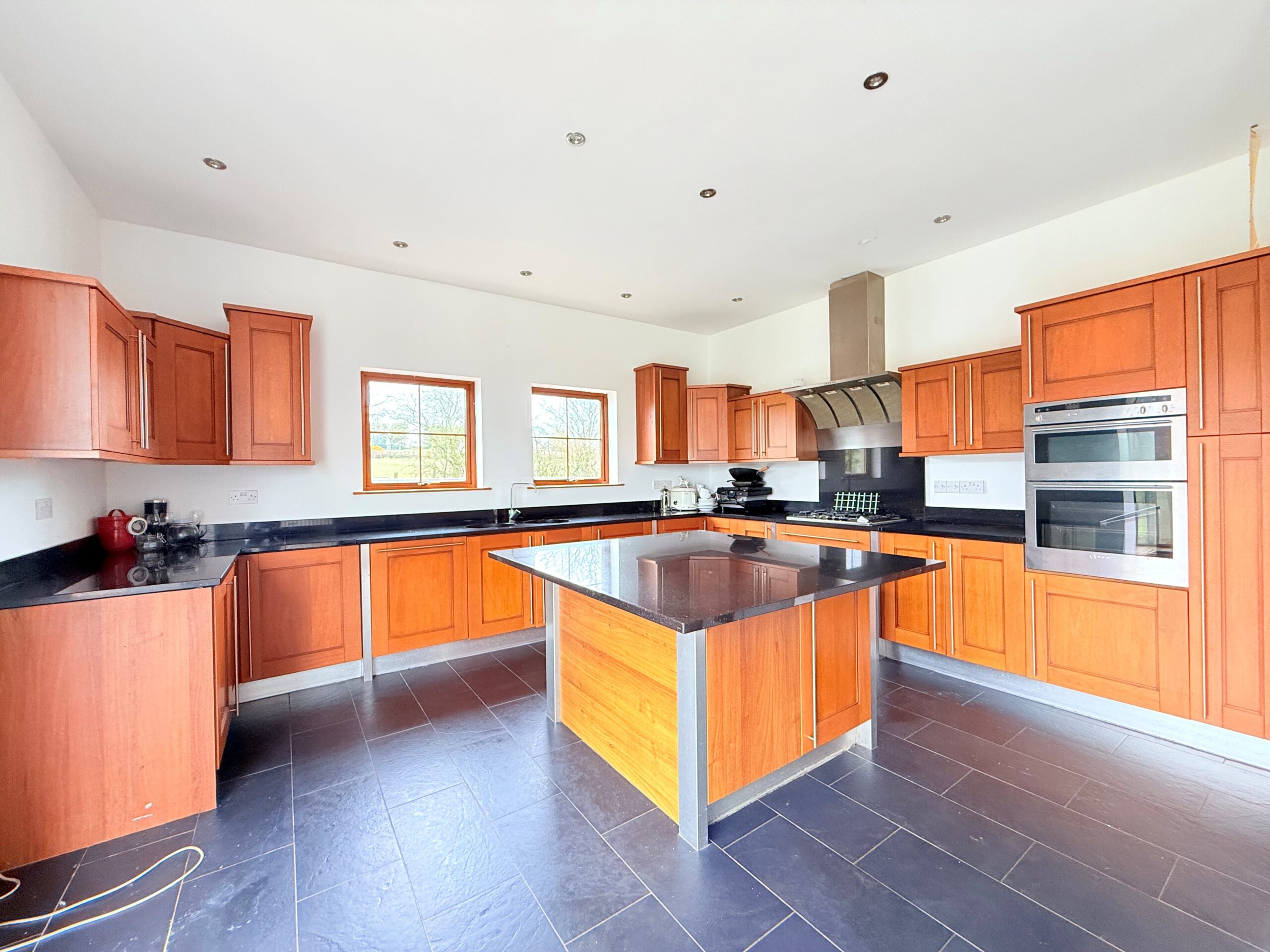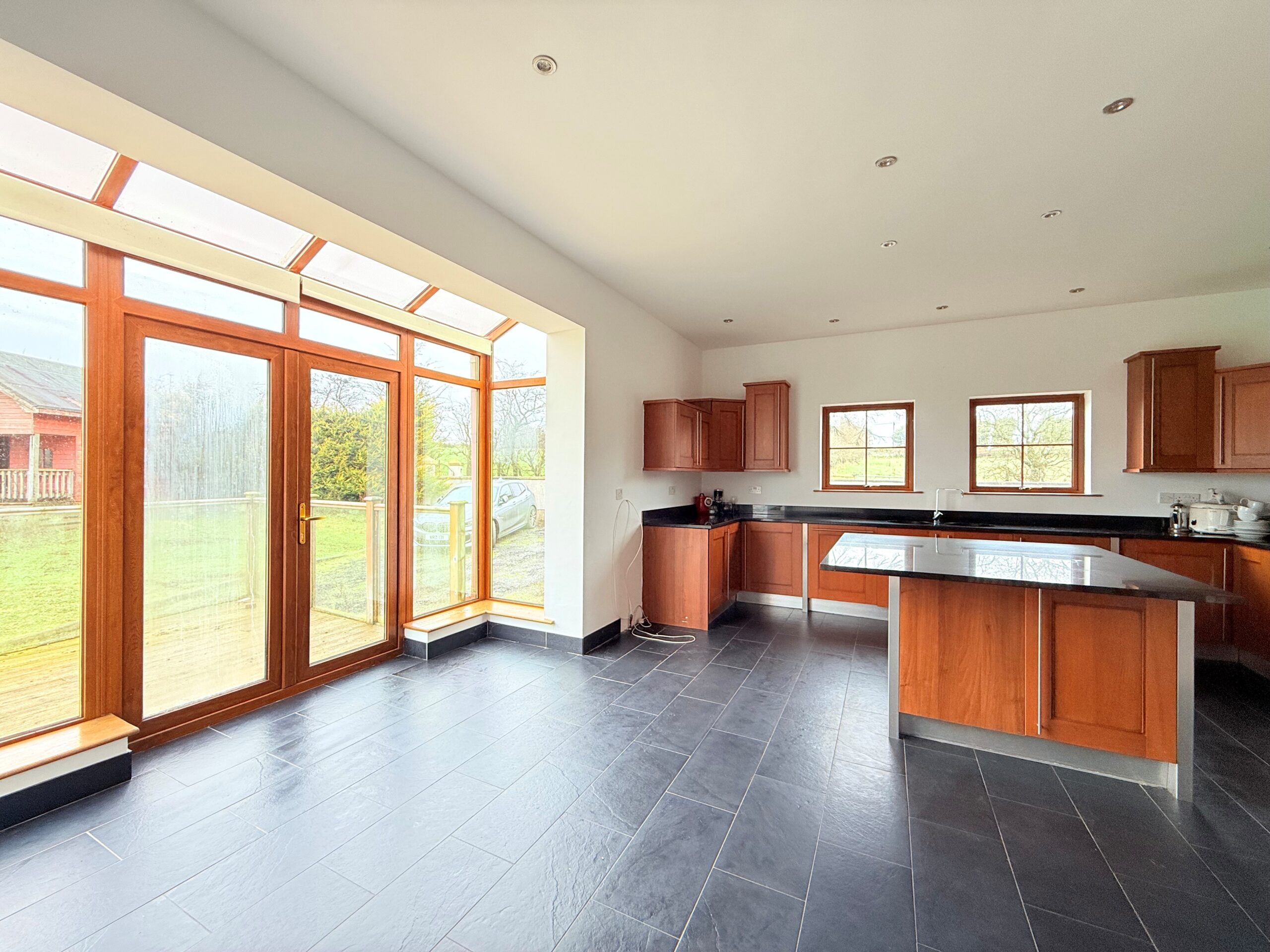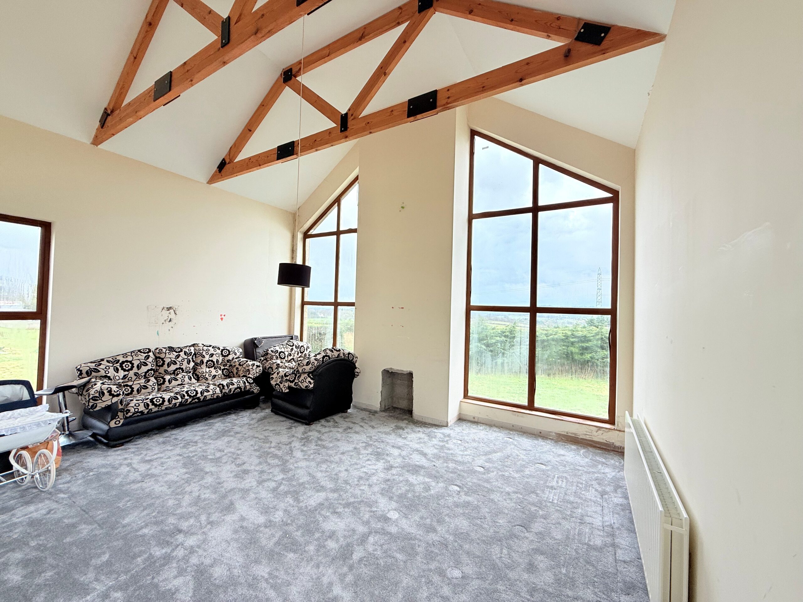 Set on a spacious rural plot with countryside views, this detached residence offers a fantastic opportunity for those seeking a versatile family home in a convenient location. A generous driveway with ample parking leads to a substantial detached garage, providing excellent space for storage and secure parking.