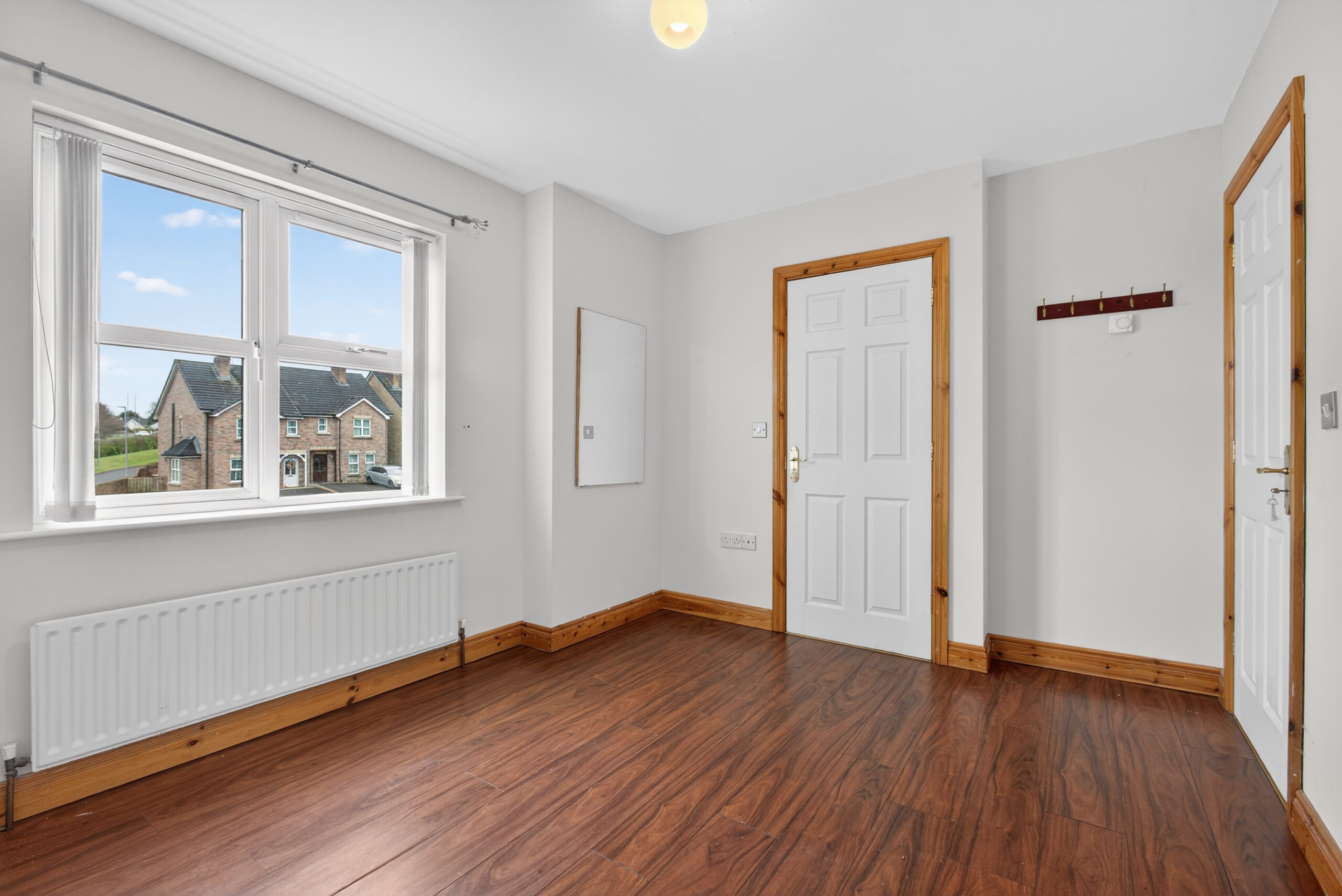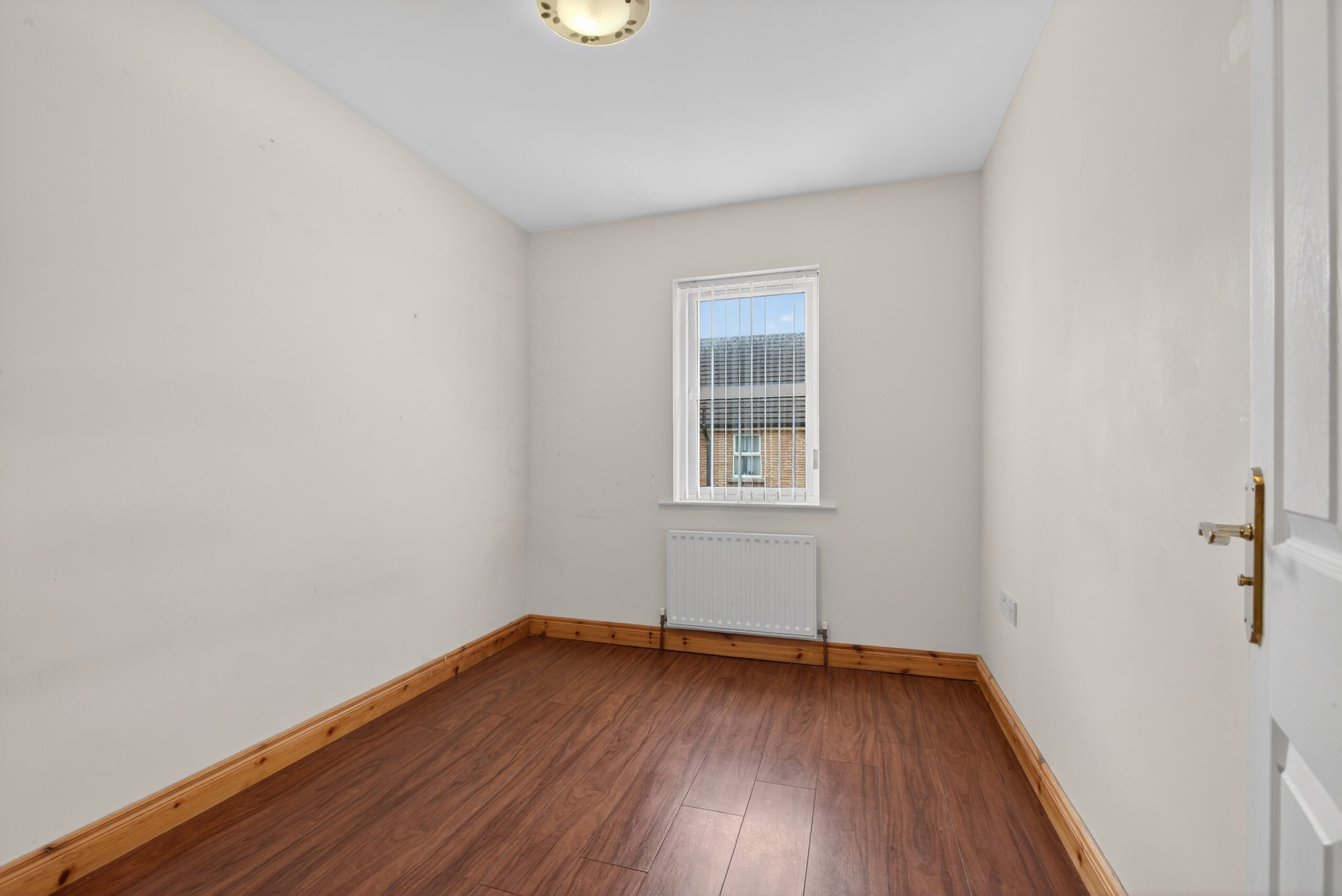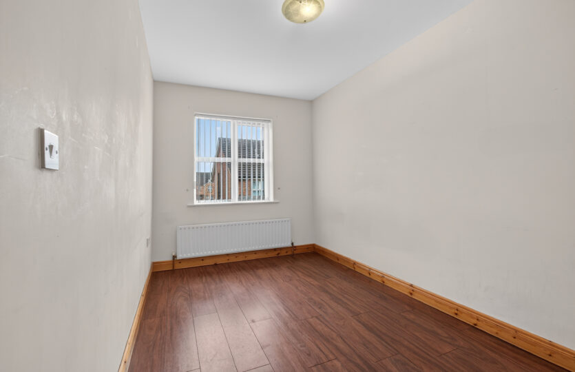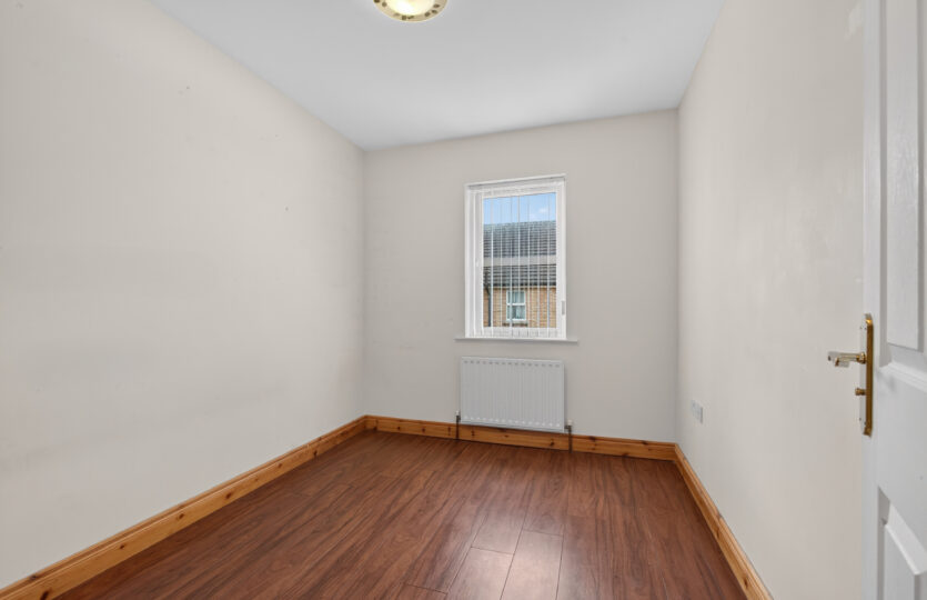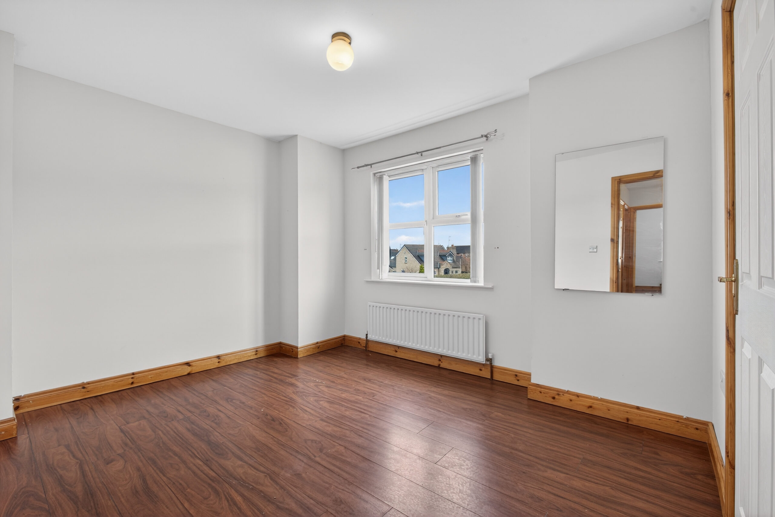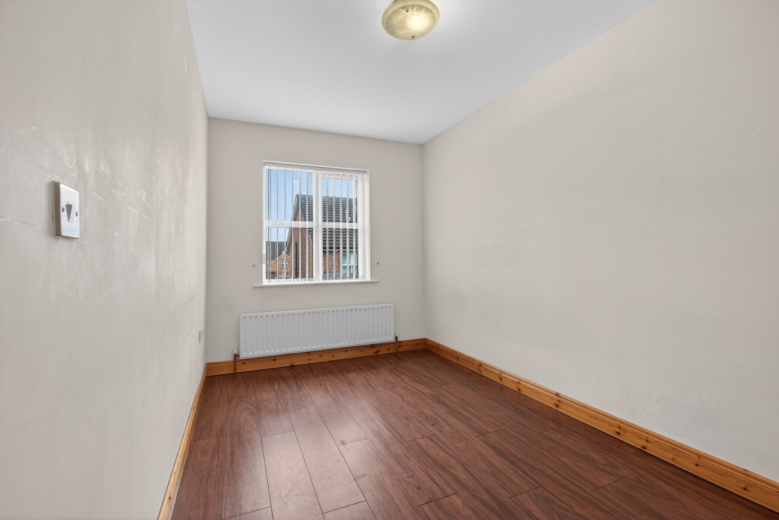 Laminated floor, radiator, built in cupboard, access to roof space