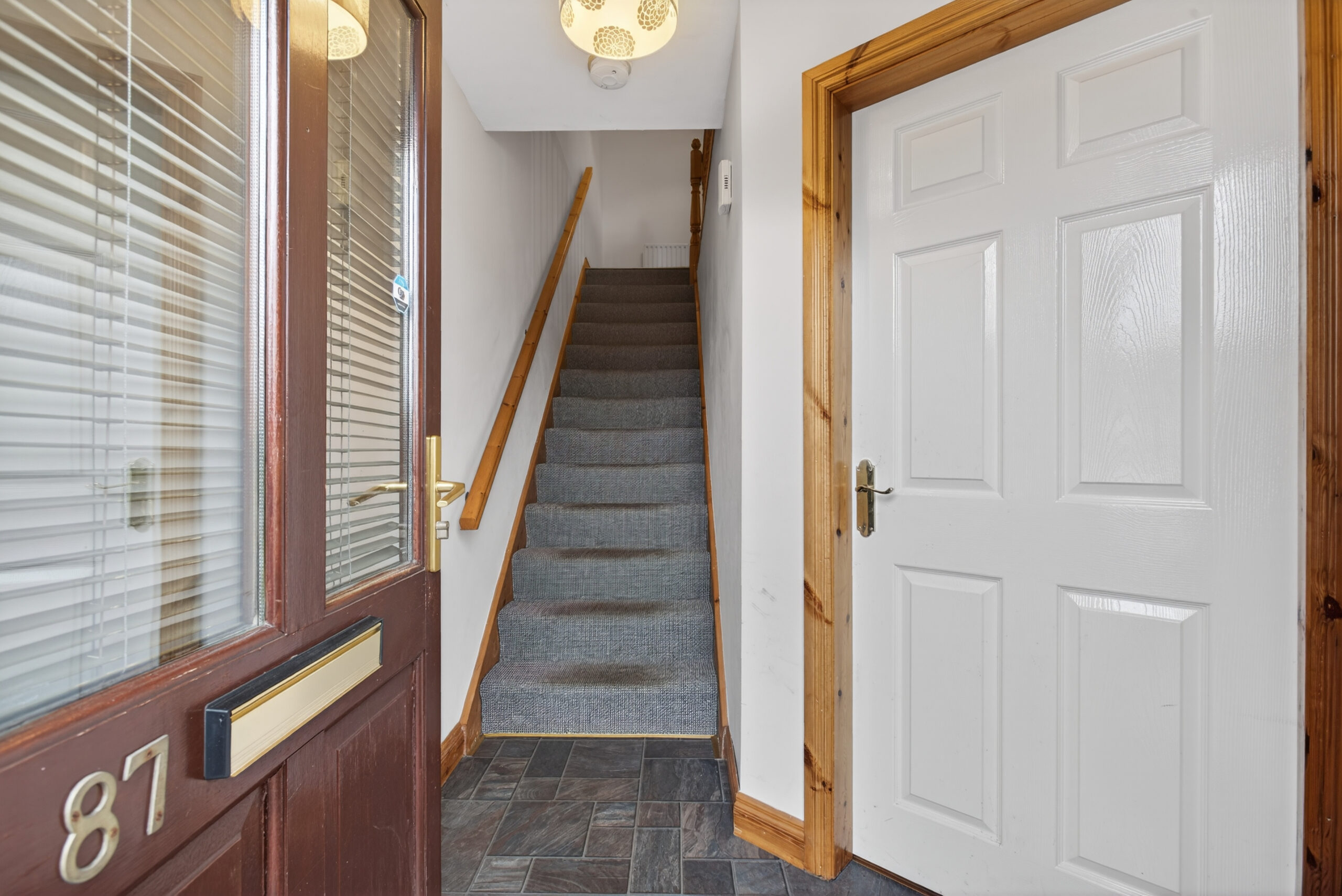 Double glazed hardwood door to front, radiator, tiled floor, staircase to first floor, door into lounge