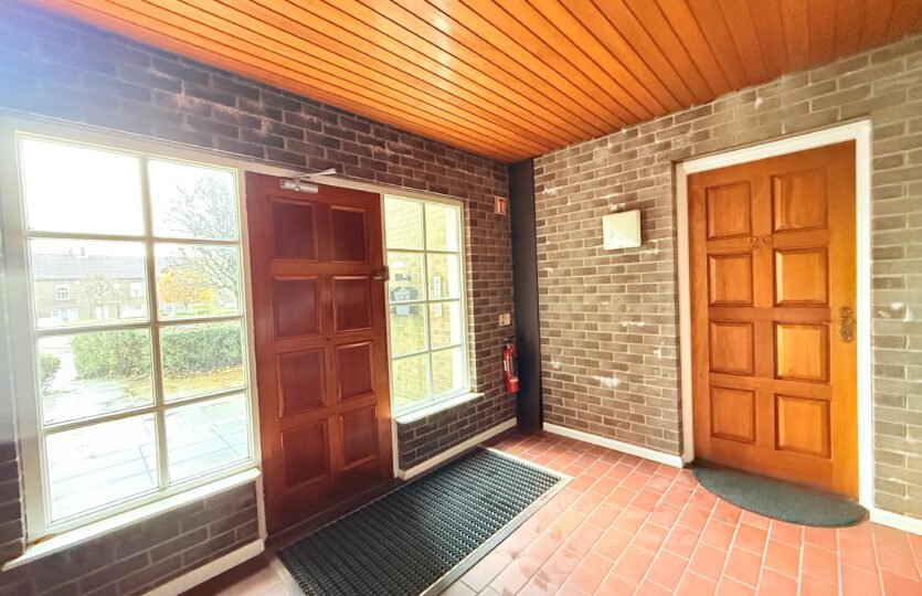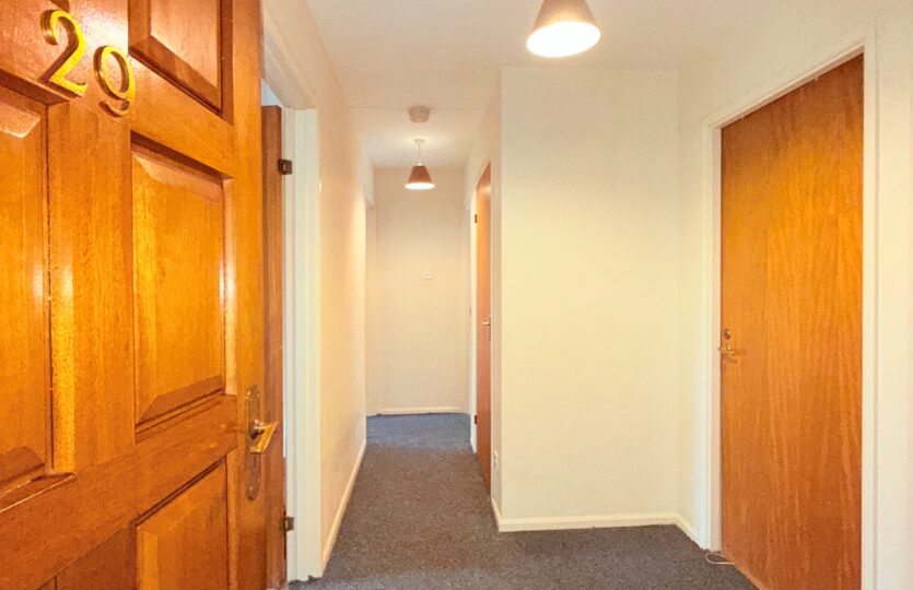 Entry phone wall mounted electric heater, walk in cloaks cupboard, additional cupboard housing water tank