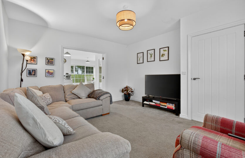 uPVC double glazed window to front, radiator, TV point, glazed French doors to kitchen/diner