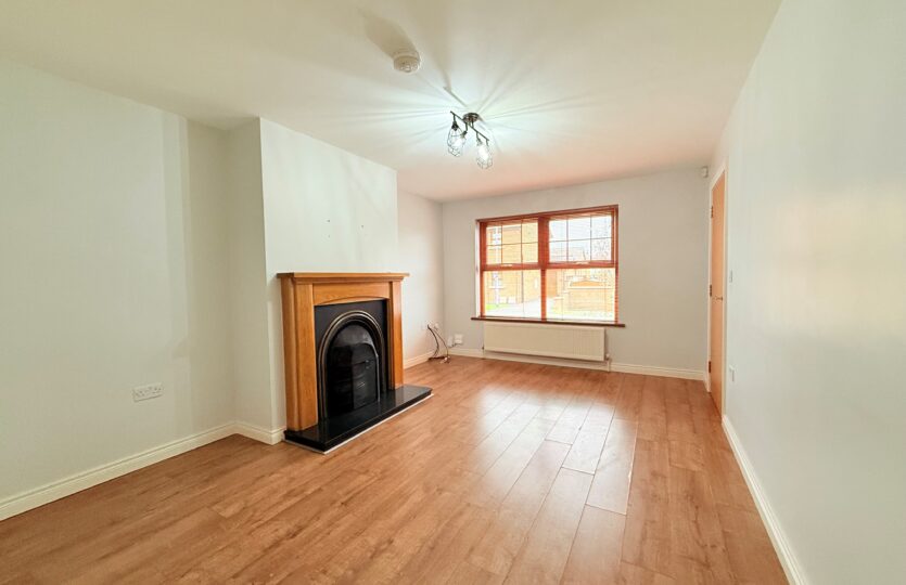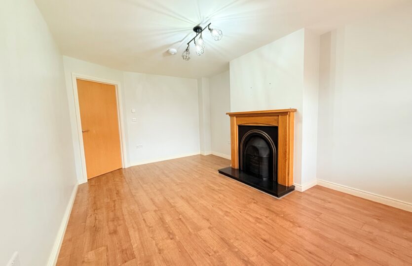 uPVC double glazed window to front, radiator, laminated wooden flooring, cast iron fireplace with oak surround and granite hearth, door into kitchen/diner