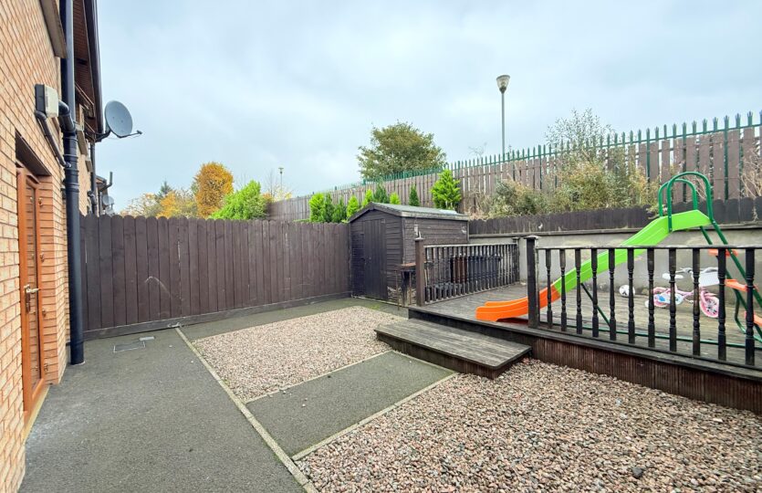 Enclosed garden to rear with gated pedestrian access to front raised timber decking and timber shed