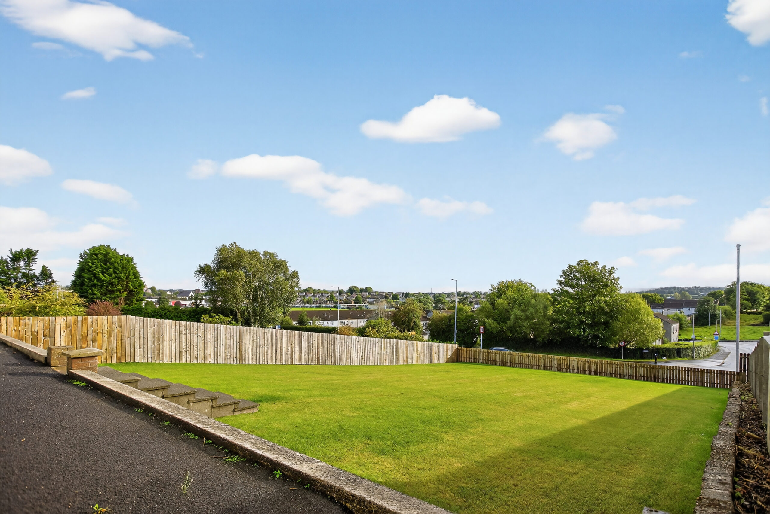 Front garden with raised area leading down to a spacious garden laid in lawn