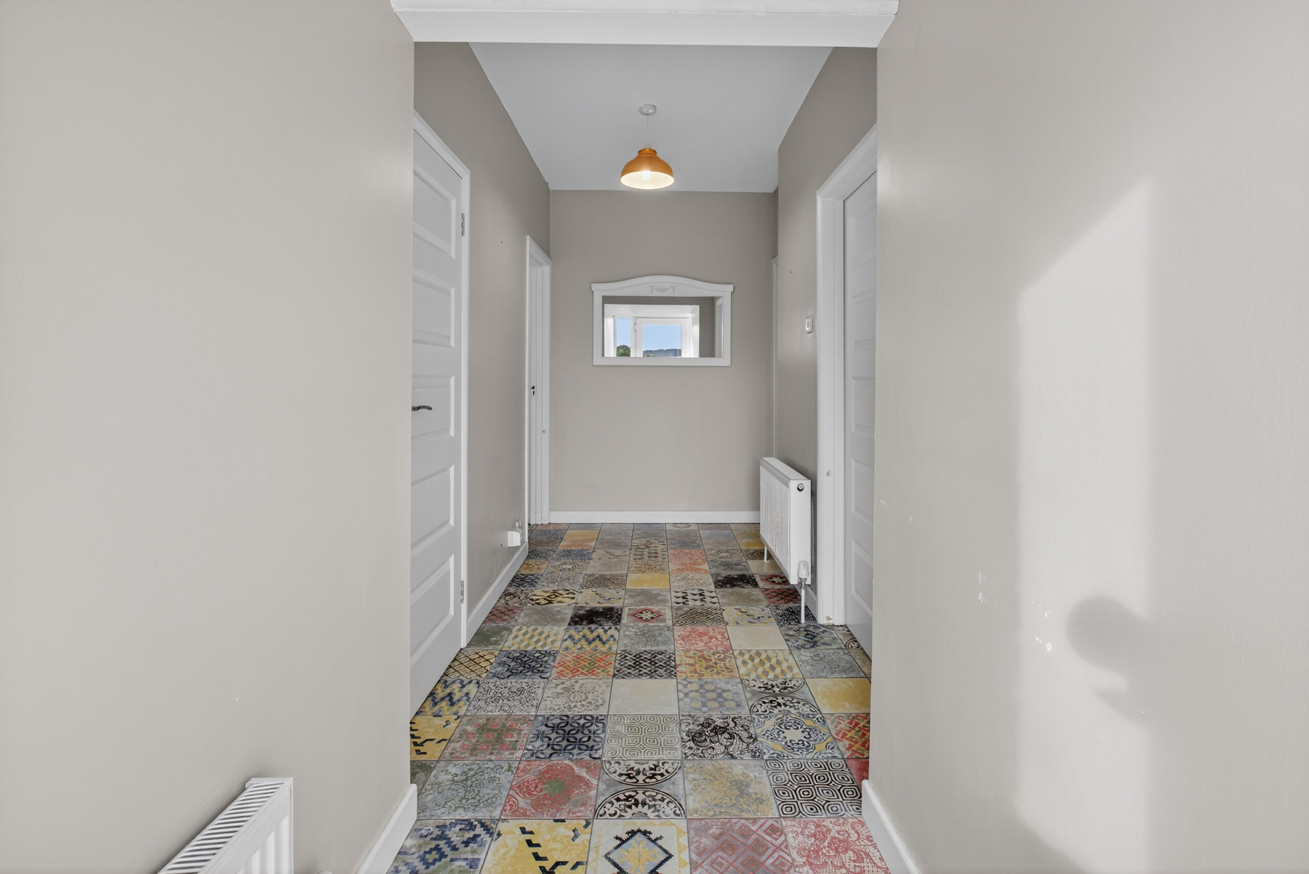uPVC double glazed window to front with double glazed side windows, radiators, tiled flooring, telephone point, built in storage cupboard