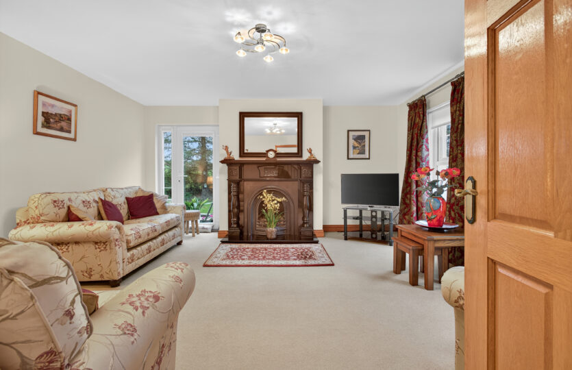 uPVC double glazed windows to front, uPVC double glazed door to side, radiator, cast iron fireplace with black granite surround and hearth, TV and telephone points